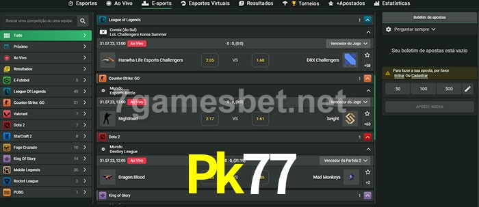 O Pk77 oferece uma grande seleção de opções de apostas em e-sports com probabilidades competitivas